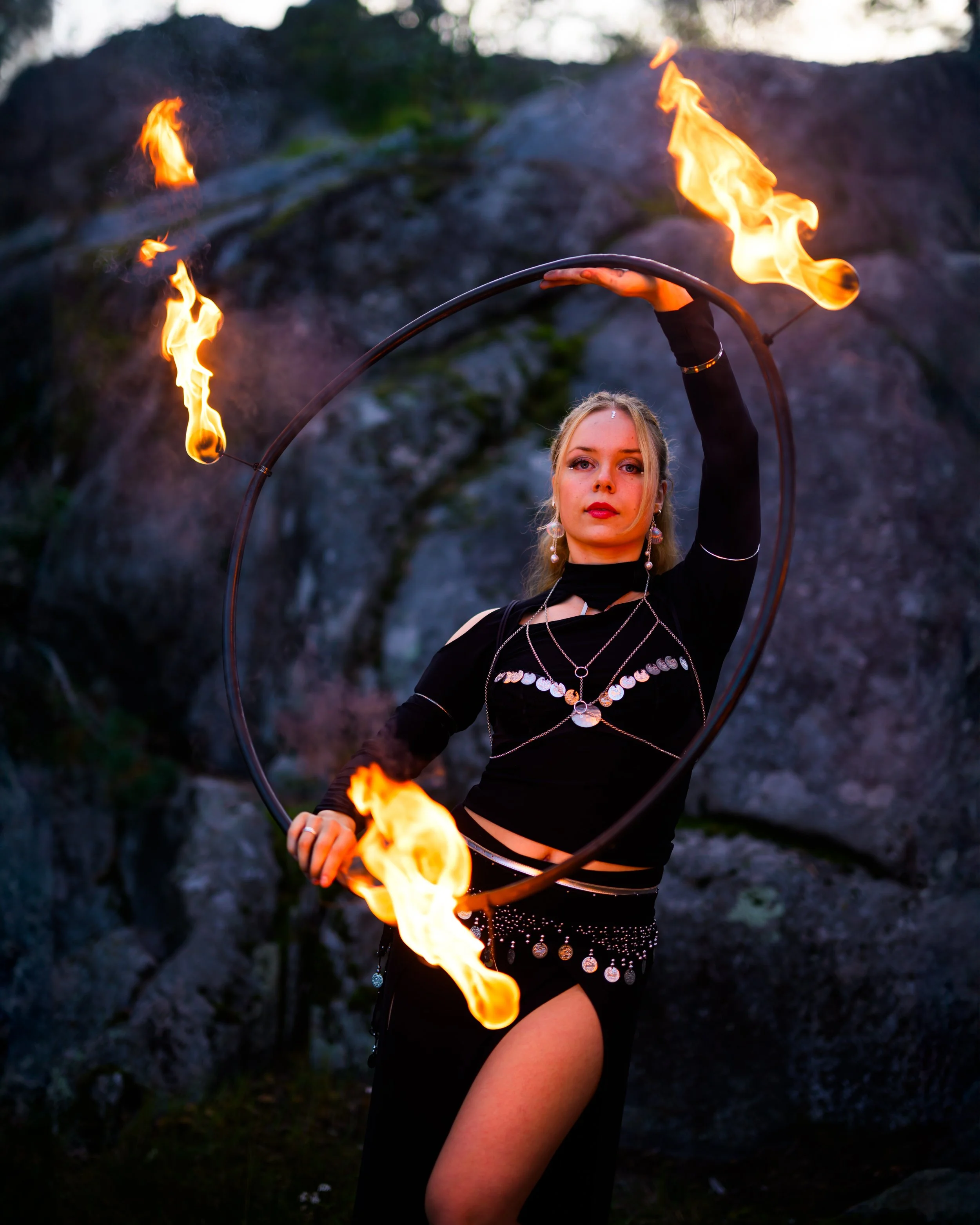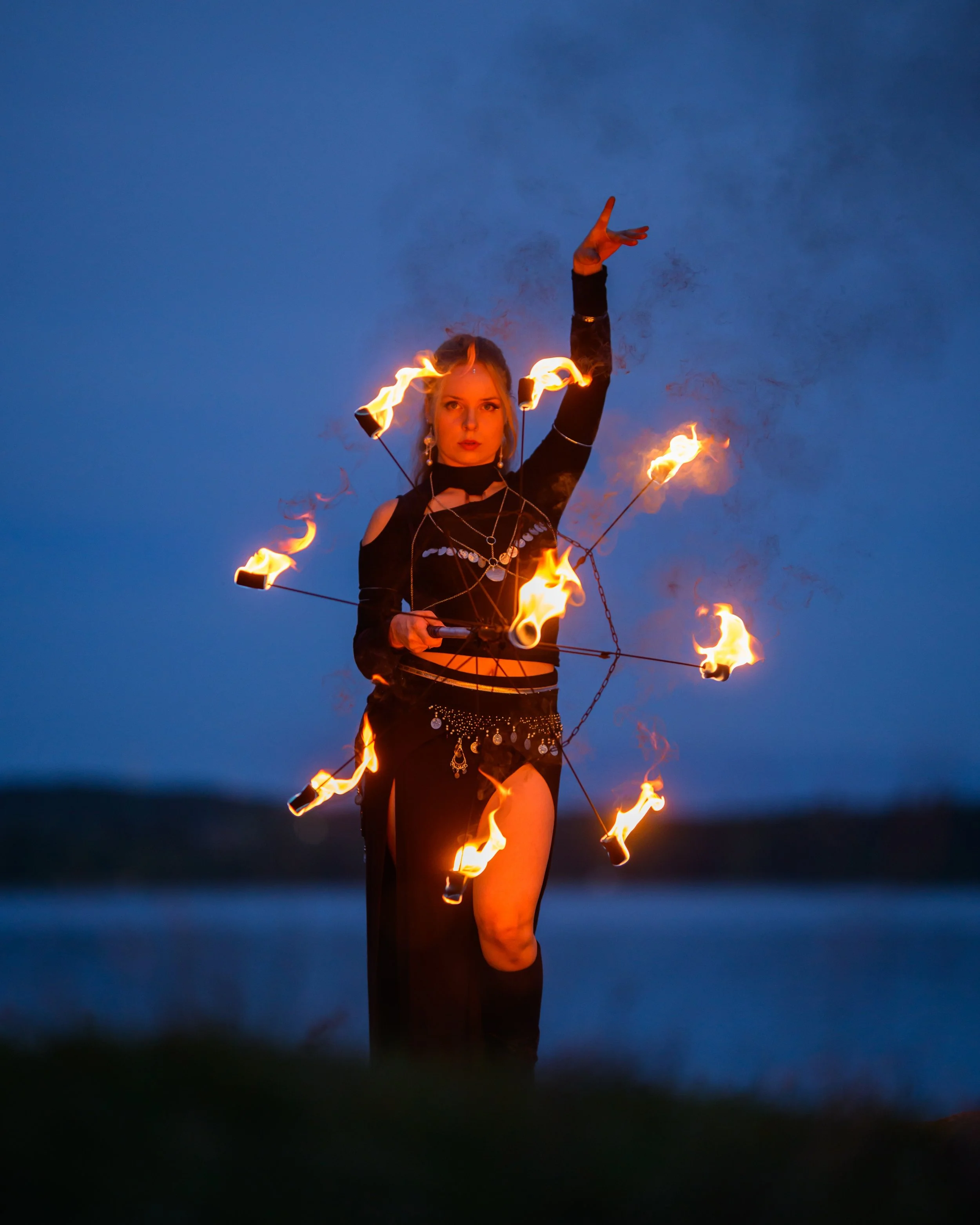 Annina Nova on vakuutettu tuliesiintyjä sekä suorittanut pelastuslaitoksen säädösten mukaisen koulutuksen paloturvallisuudesta ja tulen käsittelystä.